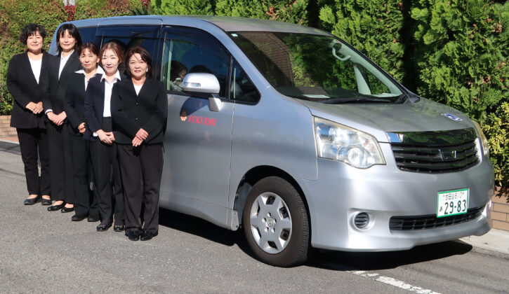 ふくえみでは、ドライバーからケアアテンダント(付き添い介護スタッフ)に至るまで、すべて女性スタッフが対応いたします。介護現場で身に付けた知識と経験をもつケアアテンダントが同行し、外出時の様々なお困りごとをお手伝いいたします(男性で同性介助をご希望の方には、男性スタッフの対応も可能です)。当日ご案内するスタッフは事前に顔合わせさせていただきますので、初対面でのサポートに不安を感じる方も安心してお任せいただけます。