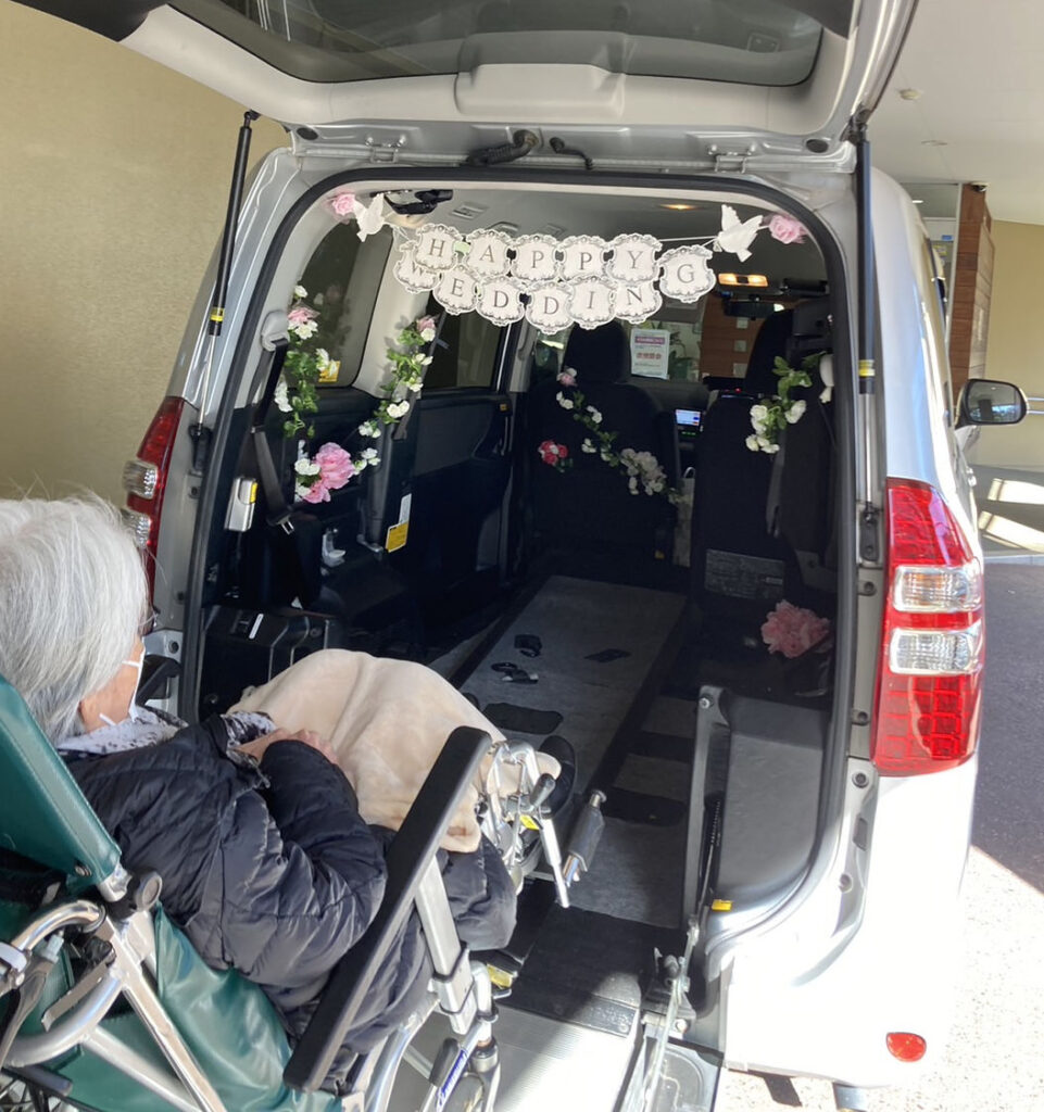 車椅子のまま乗車できる福祉車両により、安全に送迎いたします。