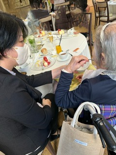 披露宴中のサポート。お食事中の見守りや服薬のお手伝い、トイレへの付き添いをいたします。
